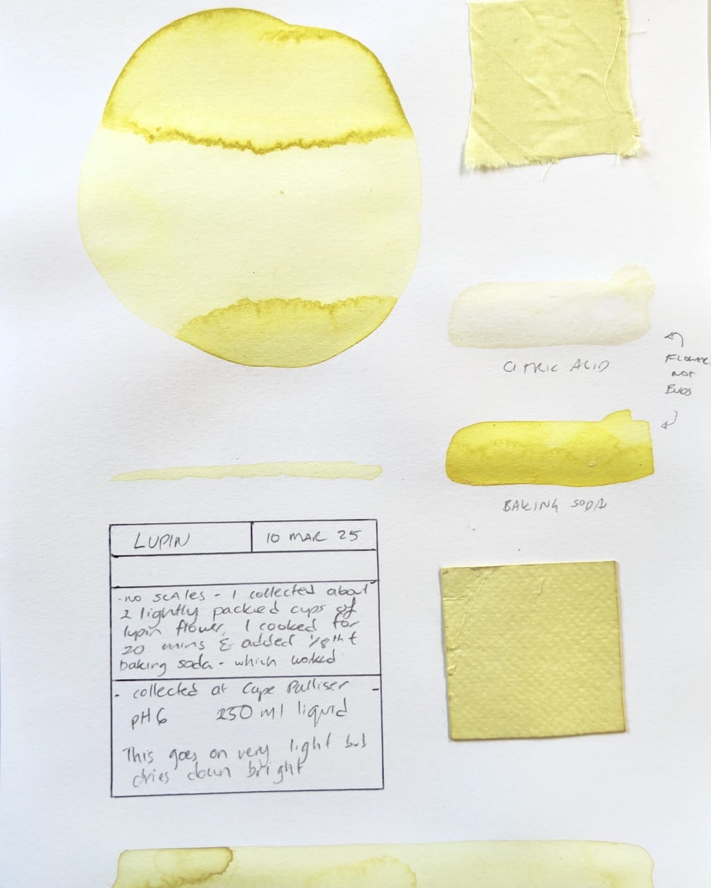 The sharpness and strength of the yellow from lupins was a good surprise. Warm, brownish yellows are fairly common in plant colours, but not such a cool yellow.