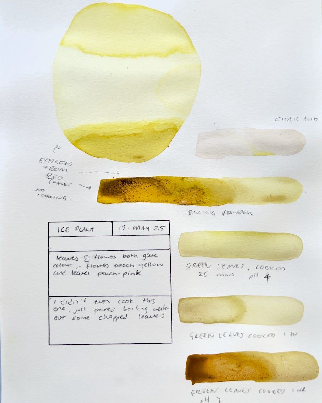 I tried out lots of wild local plants for colour - ice plant, seaweeds and lupins. Kath kept bringing me other plants she had found to test too.